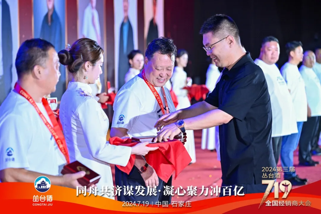 發(fā)言過后,大會對優(yōu)秀經(jīng)銷商進行表彰,金牌贈予金色伙伴,象征著叢臺酒與經(jīng)銷商同仁之間的真摯情誼,情比金堅。